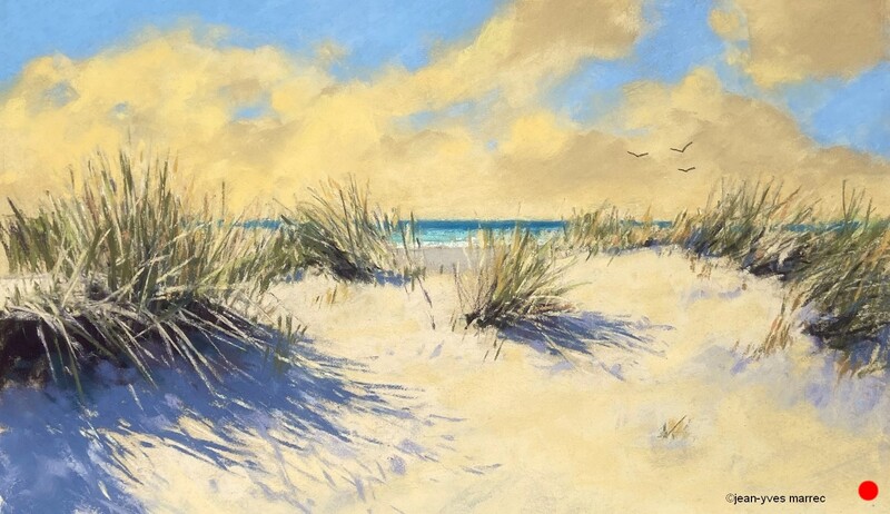 "La dune inondée de soleil" pastel sec 36x21 cm  VENDU